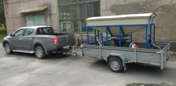 Мобильный пневматический кормораздатчик с функцией дозирования.